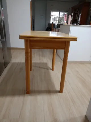 Mesa de cocina extensible con un diseño clásico y funcional. Perfecta para aprovechar el espacio. - Acabado en tonos beige y marrón. - Fabricada en madera resistente. Las medidas son cerradas, abierta sería el doble.