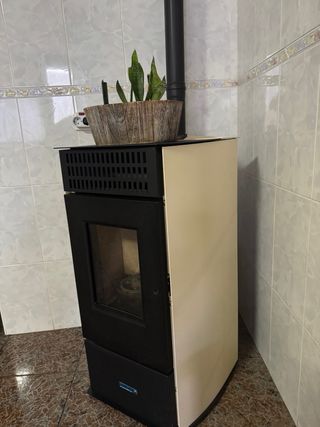 Estufa de pellet con un diseño moderno y elegante. Vale para pasillo y cualquier estancia. 10kW canalizarlo. Se vende con 4 metros de tubo y chimenea. Estuvo funcionando 2 temporadas y dejo de encender, se vende para reparar.