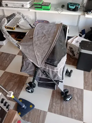 Este carro para mascotas de Mobiclinic es práctico y funcional. - Color gris y negro. - Diseño con capota y malla para ventilación.