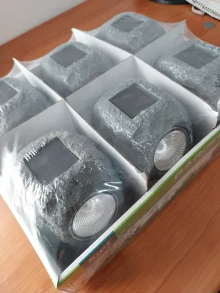 Pack de 6 lámparas solares con diseño de piedra. Perfectas para iluminar tu jardín. - Diseño imitación piedra. - Panel solar integrado. - Luz LED.