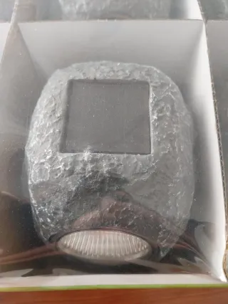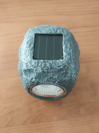 Lámpara solar con diseño de roca para exteriores. Perfecta para iluminar jardines o caminos. - Panel solar integrado. - Lente texturizada para una luz difusa.