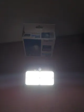 Lámpara LED de pared para exteriores con energía solar. - Iluminación de luz fría (6500K). - Potencia de 2W, equivalente a 20W. - Flujo luminoso de 270 lúmenes. - Sensor de movimiento con alcance de 5 metros.