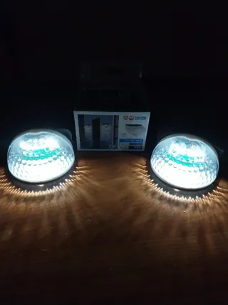 Ilumina tu espacio exterior con este pack de dos luces solares. - Diseño moderno y funcional. - Fabricadas en plástico resistente.