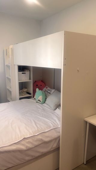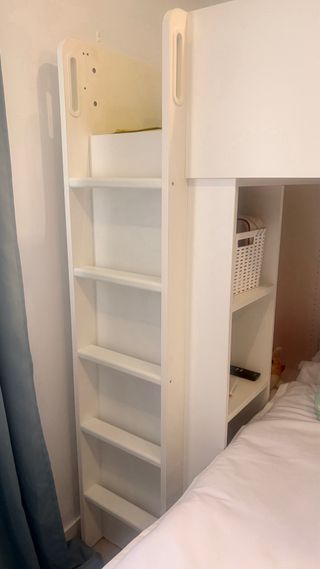 Estructura de cama alta de IKEA, con unas medidas de 90 cm. - Diseño moderno y funcional. - Escalera integrada para un fácil acceso Con cinco escalones. - estanteria en la parte interior. ⚠️no entra en la conora la cama de abajo⚠️