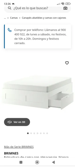 Cama 140x200 Ikea Brimnes con cajones
