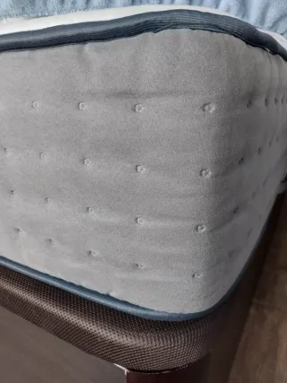 Pack de colchón y canapé de 150 x 190 cm. - Colchón de muelles ensacado con tejido gris y detalles. - Canapé XL color wenge con base de tela marrón de 38 cms - Tamaño 150 x 190. - Con 2 o 3 usos.