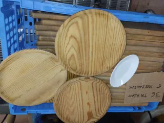Lote de tablas de madera para servir . Incluye 36 tablas a 1,50 la unidad y 5 platos 1€ la unidad - Material: Madera - Color: Marrón natural