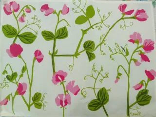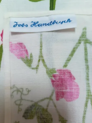 Salvamanteles de tela con un bonito estampado floral en tonos rosas y blancos. Ideal para proteger tu mesa con estilo. - Medidas: 30x40 cm. - Diseño de flores y hojas verdes.