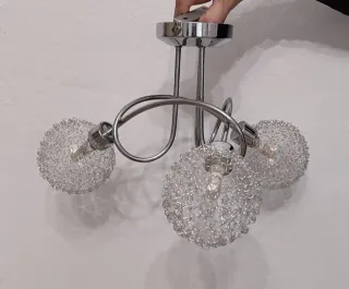 2 lámparas de techo con un diseño moderno y tres puntos de luz. - Acabado en plata y detalles transparentes. - Fabricadas con materiales de calidad como metal y cristal. 25€ cada una 40€ las dos