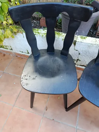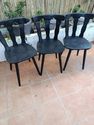 Conjunto de tres sillas de madera con un diseño clásico y elegante. Perfectas para dar un toque de estilo a tu comedor o cocina. Tienes pequeñas señales por el uso pero están bastante bien. Precio es por las 3. - Estructura robusta y duradera. - Asiento cómodo y respaldo ergonómico. - Acabado liso y fácil de limpiar. Tengo más sillas y taburetes en mi perfil por si interesa Gracias.