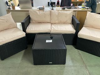 Juego Ratan Exterior Beige y Negro