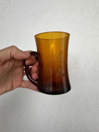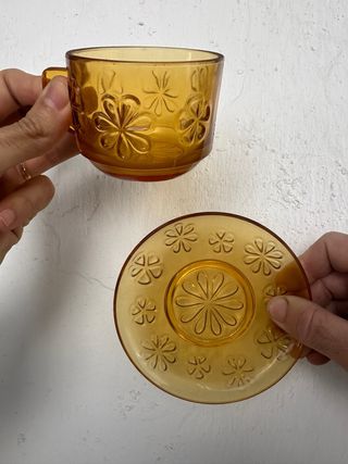 Juego 6 Tazas y Platos Vereco Francia Vidrio Ámbar