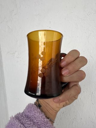 Juego de 6 Jarras de cristal ámbar grabadas