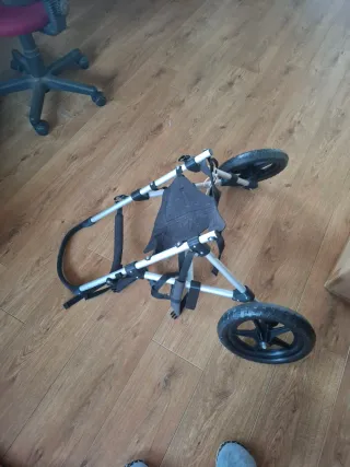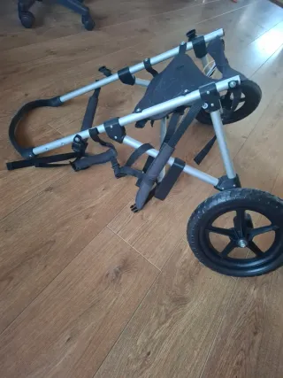 Silla ruedas delantera perro más de 25kg, una de las ruedas está un poco desinflado pero se puede llenar. Falta un tornillo aunque aguanta el peso. Medidas: -64cm alto ajustable -30cm ancho ajustable Silla de ruedas para perros, diseñada para brindar movilidad. - Estructura de metal resistente.