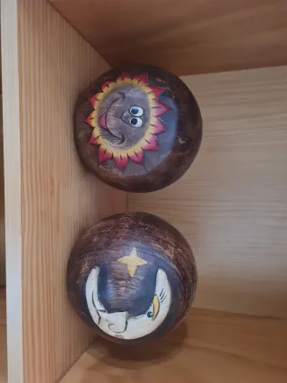 2 Bolas Decorativas Madera Sol y Luna