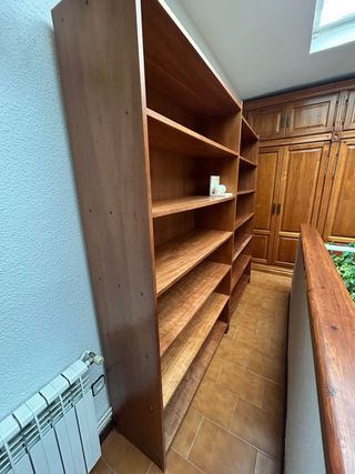 Estantería de madera con varios estantes, ideal para organizar libros o decoraciones. Dos estanterías iguales, separadas. se vendería por 200€ cada una, en el caso de querer las dos se podría llegar a un acuerdo. - Diseño de madera robusta. - Múltiples niveles de almacenamiento.