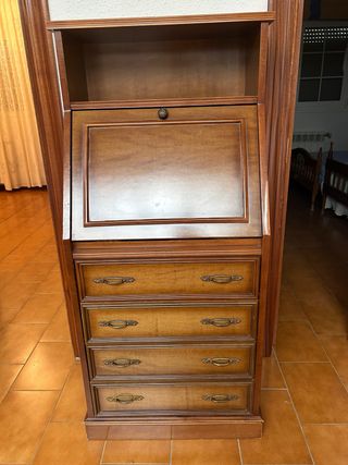 Mueble de madera con vitrina y cajones