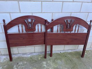 Conjunto de dos cabeceros de madera para camas individuales. - Diseño clásico con detalles tallados. - Acabado en tono marrón oscuro. - Ideales para camas de 90 cm.