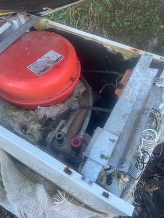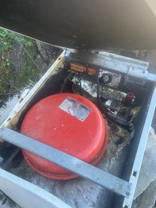 Caldera de gasoil. - Componente principal de color rojo. - Estructura exterior de color gris.