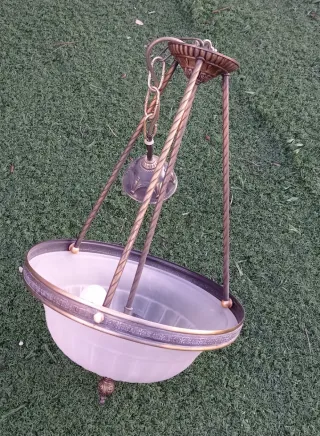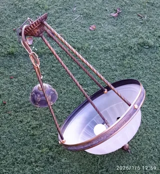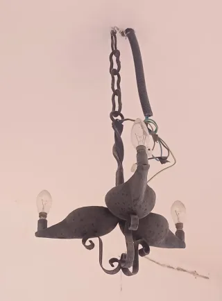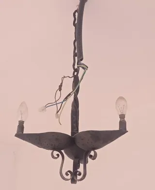 Lámpara de estilo rústico y antigua con un diseño único. - Estructura principal de forja. - 3 tulipas para bombillas. - Recogida en persona
