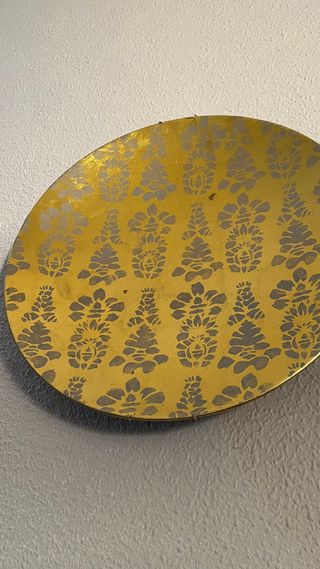 Conjunto de bandejas decorativas con un diseño floral. - Acabado en dorado y gris. - Patrón de flores estilizadas.