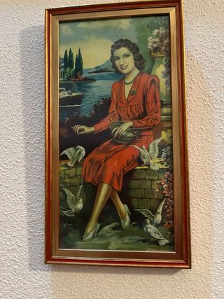 Conjunto de tres láminas antiguas con marcos. - Motivos decorativos clásicos. - Marcos con detalles dorados y rojos.