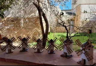Molinos de viento decorativos hechos a mano. Material cartón/piedra y madera - Diseño artesanal. - Cuerpo de cartón. - Aspas y puerta de Madera
