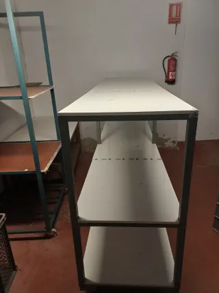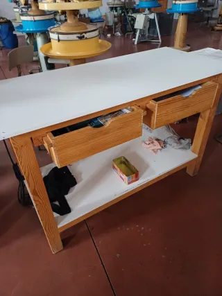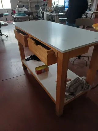 Mesa de trabajo robusta con estructura metálica y superficie de madera. - Estructura de metal resistente. - Superficie de madera. - IMPORTANTE!!!! Los cajones van a parte es solo la mesa -3.60 x 1.80 x 0.90 de altura