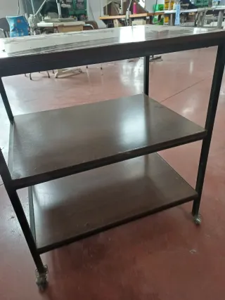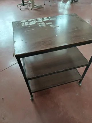 Estantería de tres niveles con estructura metálica y baldas de madera. - Diseño moderno y funcional. - Fácil de mover gracias a sus ruedas. - 50 x 70 x 80 alto