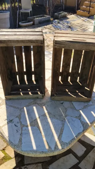 cajas de madera antiguas, perfectas para almacenamiento o decoración. - 8€ cada una - Diseño apilable. - Aspecto rústico y vintage. - Ideal para organizar objetos o como elemento decorativo.