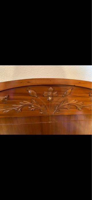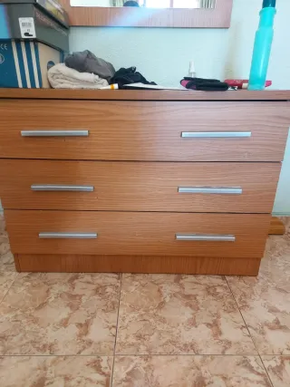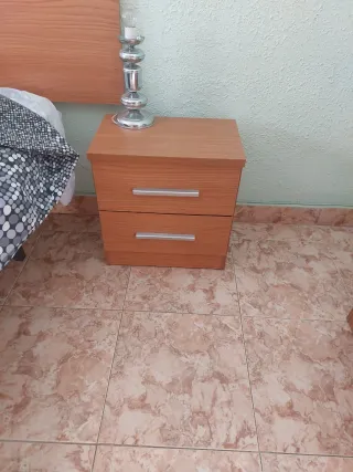 Se vende conjunto de muebles para habitación de matrimonio. - Cama. - Dos mesitas de noche. - Cómoda. La cama es de 150 (somier aparte). El cabecero hace 3150. Las mesitas van metidas por debajo de la cama. Cómoda 1200x670x430 Tiene roces por los años, sobre todo en las patas de la cama.