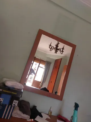 Elegante espejo con marco de madera. - Forma redonda. - Marco de madera.