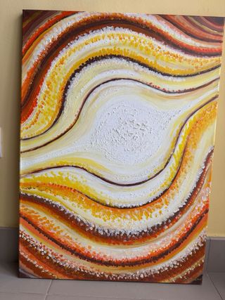 Cuadro abstracto con un diseño orgánico y texturizado. Sus tonos cálidos y vibrantes aportan un toque de energía a cualquier espacio. - Medidas: 70 x 50 cm. - Técnica mixta con relieve.