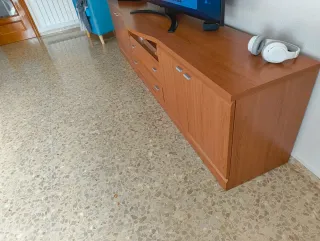 Mueble de salón diseñado para colocar tu televisión y organizar tus dispositivos. - Diseño moderno y funcional. - Amplio espacio de almacenamiento con puertas y cajones. - Acabado en madera de roble.