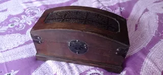 Este baúl de madera presenta un diseño clásico con detalles metálicos. - Tapa curva. - Cerradura frontal decorativa.