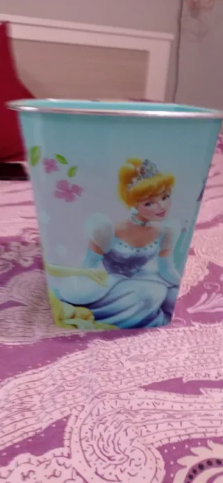 Papelera con un bonito diseño de princesas Disney, ideal para habitaciones infantiles. - Decorada con Aurora y otras princesas. - Tonos rosas y turquesas. - Fabricada en metal.