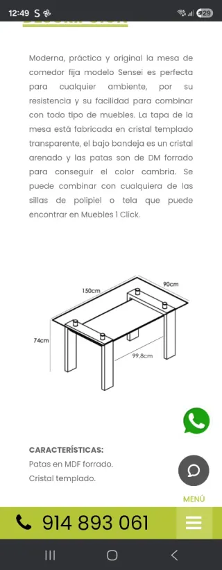 Elegante mesa de comedor con superficie de cristal y patas de madera. - Diseño moderno y funcional. - Combina a la perfección con diversos estilos de decoración. (Esta desmontada)