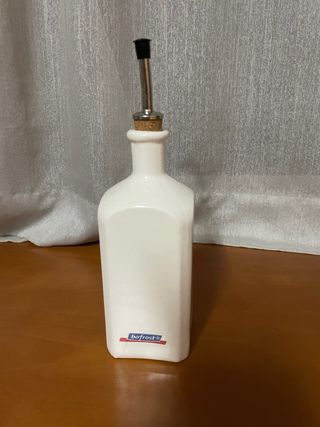 Aceitera de cerámica con tapón de corcho y boquilla metálica. - Diseño elegante y funcional. - Ideal para aceites y vinagres.