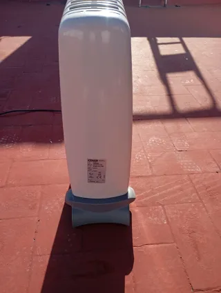 Calentador eléctrico DeLonghi. - Color blanco y gris. - Fabricado en metal y plástico.