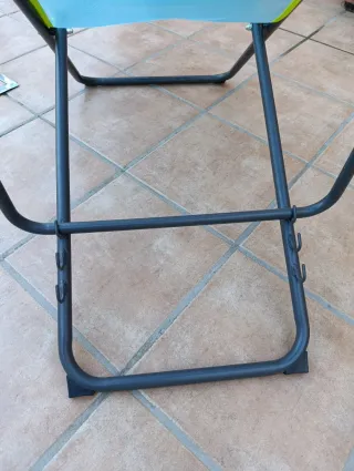 Conjunto de mesa y dos sillas plegables, ideal para tu terraza o balcón. Han tenido muy poco uso y se encuentran en buen estado. - Estructura metálica. - Tablero de madera. - Color verde y blanco.