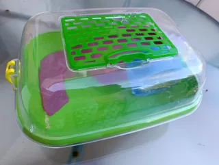 Jaula para hámster o tortuga Está mordida la parte de arriba de plástico por mi hamster, pero si la quieres para tortuga te puede servir
