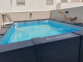 Piscina desmontable en perfecto estado(se uso solo unos dias este verano) con estructura de metal y revestimiento panelado efecto madera gris. Piscina desmontable Graphite Gray Panel INTEX con medidas 400x300x124 cm, capacidad para 10.091 litros Depuradora: incorpora depuradora de arena de 5.700 l/h (REF. 26644) con mangueras de Ø38 mm y sistema Hydro Aeration Technology(depuradora salina)incorporado para mejorar la filtración y aumentar la pureza del agua - Fácil montaje y desmontaje. PRECIO: 1.250€