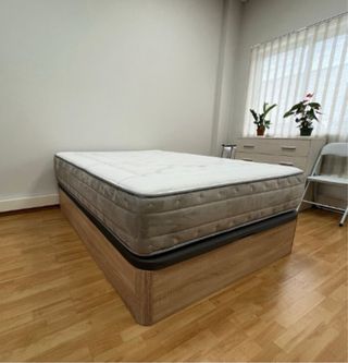 Se vende conjunto de cama completo, listo para usar. Incluye colchón, base tapizada y patas. - Colchón marca Terra(descanso perfecto)VISCOELASTICA - Medidas: 90x190 cm. - Base tapizada con patas incluidas. REGALO ALMOHADA Y FUNDA DEL COLCHÓN