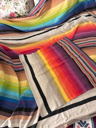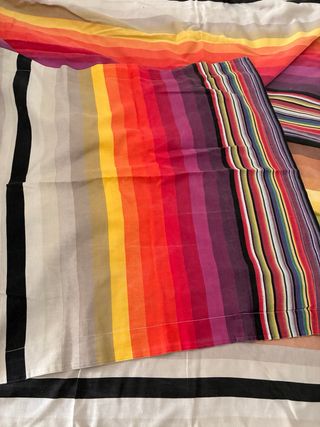 Juego de funda nórdica y funda de almohada con un vibrante diseño de rayas multicolor. - Funda nórdica de 200x200 cm. - Incluye una funda de almohada a juego.