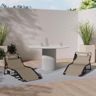 Tumbona plegable KingCamp, ideal para exteriores. Se ajusta en 5 posiciones para mayor comodidad. - Estructura metálica resistente. - Tejido de tela duradero. - Incluye almohada. - Bolsillo lateral de malla. - B0CZ75BJXD