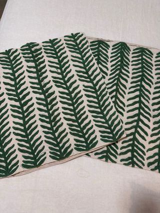 Set de dos cojines decorativos de H&M. Añaden un toque de color y estilo a cualquier espacio. - Diseño con estampado de hojas. - Acabado con flecos en los bordes.