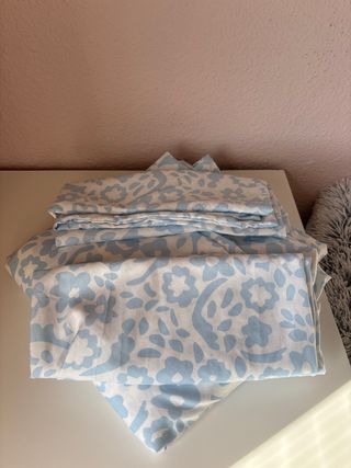 Funda nórdica algodón estampada. - Medida: 150 x 229cm y funda de almohada 110 x 45 - Diseño: Estampado floral - Hilos: 142 Compradas por error.