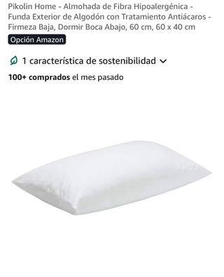 Almohada Pikolin Home con funda exterior de algodón y tratamiento antiácaros. - Firmeza baja. - Ideal para dormir boca abajo. - Medidas: 60 cm x 40 cm. D1050 Caja R