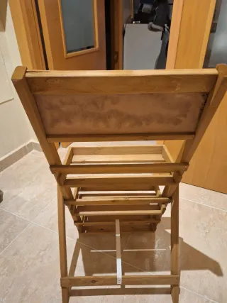 Mesa plegable de madera con un acabado en tono marrón. - Diseño funcional y práctico. - Ideal para espacios reducidos.