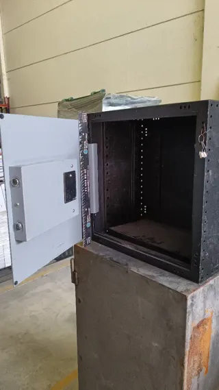 Armario /caja fuerte de seguridad con cerradura electrónica y teclado numérico. - ideal para documentos o artículos que necesiten seguridad. - Acabado en gris y negro. No es una caja fuerte.